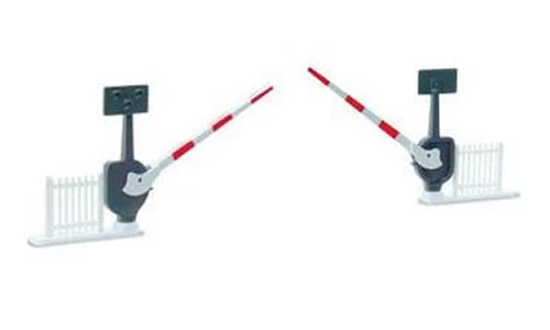 Modern type crossing barriers complete with dummy light standards. The detailed plastic mouldings include the side fences.