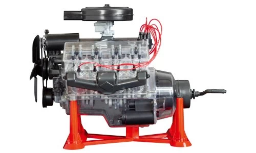 True to original replica of a V8 engine in scale 1:4. The eight-cylinder engine is also known under the name “Boxer”. In the early days, it was used mainly in racing. Later it was for passenger cars of the upper middle and luxury class. The first known V8 engine was produced in 1904 by the French company Antoinette for use in airplanes, and the and the Cadillac L-Head engine of 1914 – 1935 is considered the first automotive V8 engine.